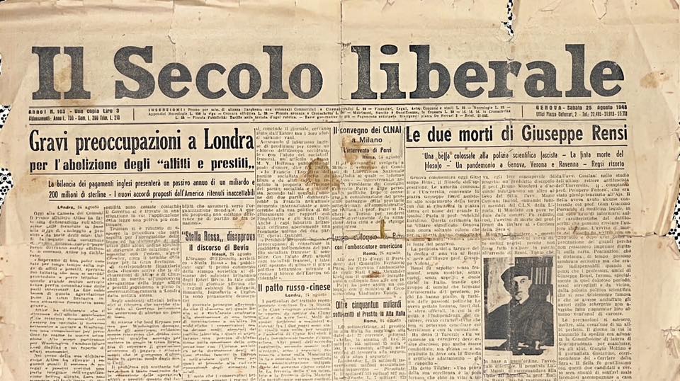 ↑1945.08.25 <secoloLiberale> Le due morti di Giuseppe Rensi (filosofo, avvocato, antifascista). Nel 2025 apprendo notizie da NC: Emanuele Sella (n.1879, iniziato GOI 1908, docente di economia politica all’UniGe e poi suo rettore, amico del Rensi) si coinvolse assieme al prof. Bruno Minoretti e all’avv. Mario Cassiani Ingoni, nello stratagemma-beffa ideata dal difensore di Rensi che con la pubblicazione di un falso necrologio costrinse Mussolini a liberare il filosofo e la moglie baronessa Lauretta Perucchi segretamente trasferiti dal carcere di Marassi al carcere di Verona. NC conobbe una persona [CzzC: aiutami a trovare chi] di cui nel 1934 i sindacalisti fascisti chiesero ed ottennero il licenziamento dalla banca COMIT perché era figlio di un penalista difensore di Giuseppe Rensi, titolare della cattedra di filosofia morale dell’UniGE, processato con l’accusa di “diffusione di scritti ostili al fascismo”. Nel 1945, subito dopo la Liberazione, questa persona, cara a NC, venne eletto delegato di fabbrica della Saiwa, ma ebbe la sgradita sorpresa di ritrovare tra il personale della direzione della CGIL gli stessi funzionari fascisti che avevano promosso il suo licenziamento. Nonostante questo, convinto che la tutela del lavoro dovesse essere primaria rispetto ad ogni altra considerazione, continuò, con ottimi risultati, a collaborate con la CGIL per tutta la vita. Nel 1961, per ringraziarlo, i 400 dipendenti della Saiwa sospesero il lavoro e uscirono dalla fabbrica per schierarsi lungo corso Gastaldi al passaggio del suo corteo funebre.