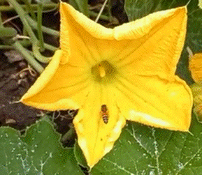 ↑2025.07.18 desisto dal raccogliere alcuni fiori di zucca (che mia moglie avrebbe cucinato impanati) dopo aver visto quanto ancora sono utili ♫.mp4 alle api; li coglierò quando saranno più appassiti.