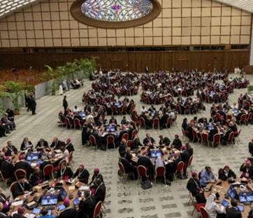 ↑2024.10.26 <google> chiude il Sinodo; i conservatori si son fatti sentire, ma perdono secondo <s24h>; Fr1 non intende scrivere un’esortazione post-sinodale <google> basti il documento finale.pdf di 155 paragrafi anche per «capovolgere prassi consolidate», convertire i processi grazie ai doni delle particolarità di chiese locali, pur se per ora «per le diaconesse» i tempi non sono ancora maturi; il documento è stato approvato con maggioranza qualificata. [CzzC: varato il relativismo geografico-continentale? Se sì, il varo potrebbe essere stato motivato dalla necessità di evitare strappi scismatici da opposte latitudini, ad esempio dal nord tedesco che sdoganerebbe le unioni gay anche ben oltre le benedizioni e il sud africano considerato “immaturo” perché fermo a non voler benedire il peccato]. <avvenire> Bruno Forte: stili di vita e processo necessario.
