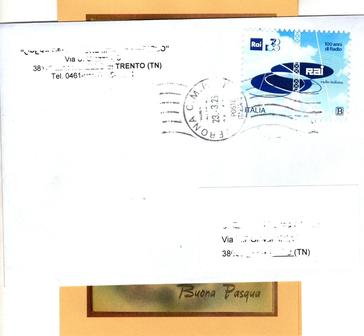 ↑2026.03.25 un francobollo a valore permanente con lettera B veniva pagato €1,25 all'emissione nel 2024; supposto che sia ~0,10€ il costo di un biglietto di auguri personalizzato con busta, il mittente spenderebbe 1,35€ al netto del tempo di gestione, 2,70 €/anno per mandarmi gli auguri a Natale e a Pasqua. Vorrei suggerire al mittente di impiegare quei soldi in ben maggiori priorità, ma so che già impiega tutto il suo tempo per aiutare il prossimo e per pregare.